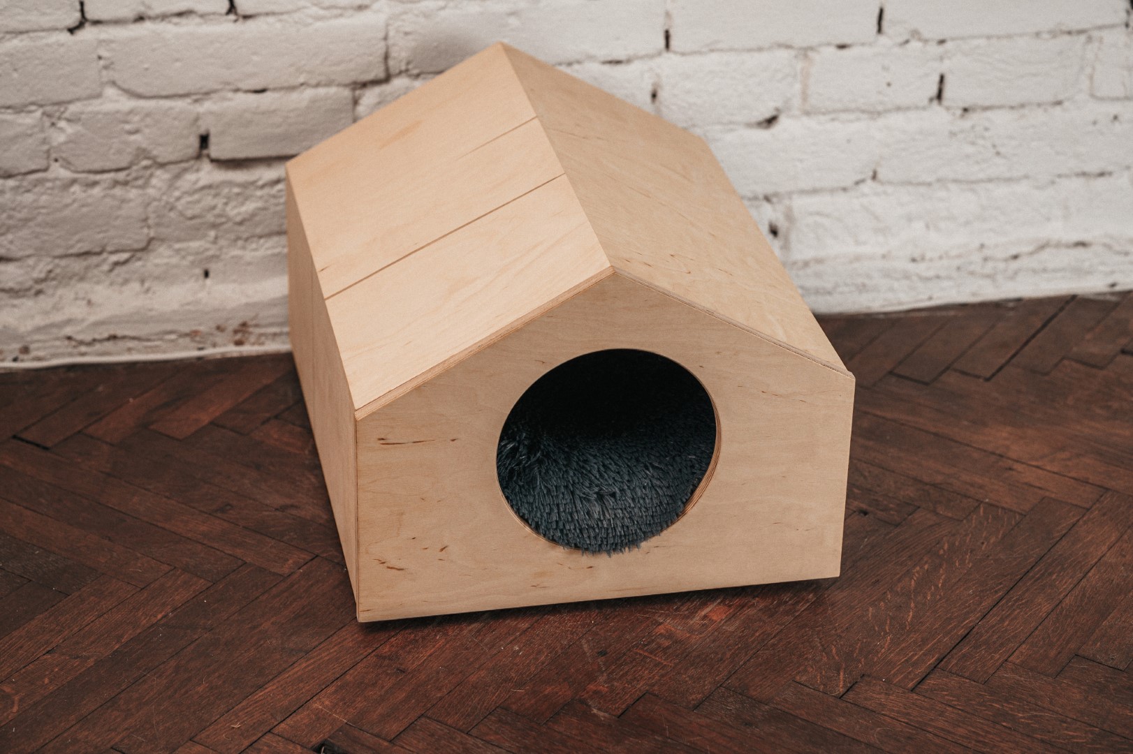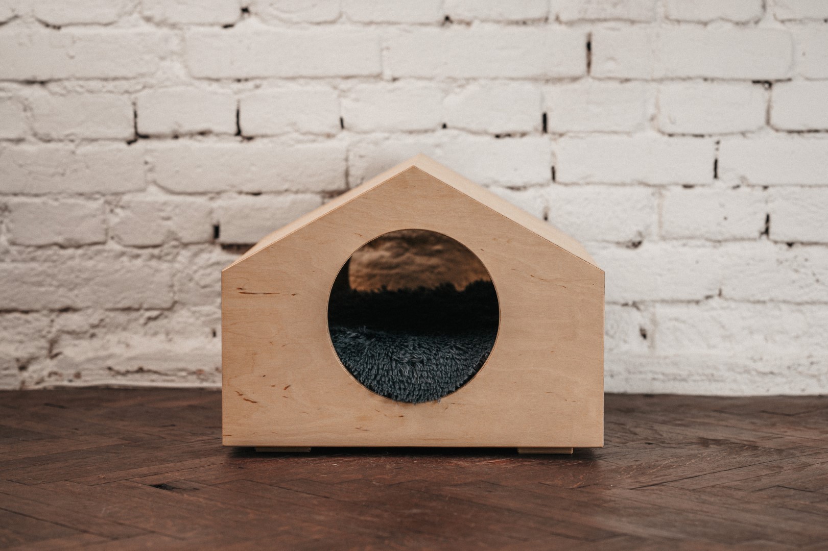 Šikmá střecha, kvalitní překližka a možnost individuální konfigurace - naše designová psí či kočičí boudu je ideálním spojením stylového interiérového doplňku a pohodlného úkrytu pro vašeho mazlíčka. Unikátně ručně vyráběná v České republice