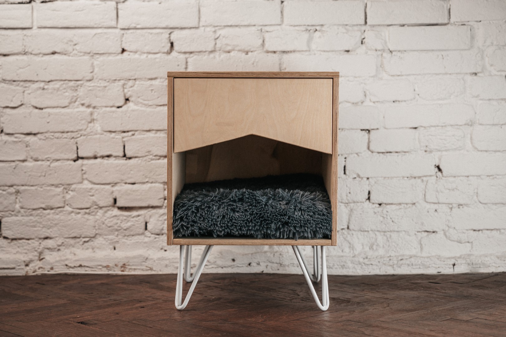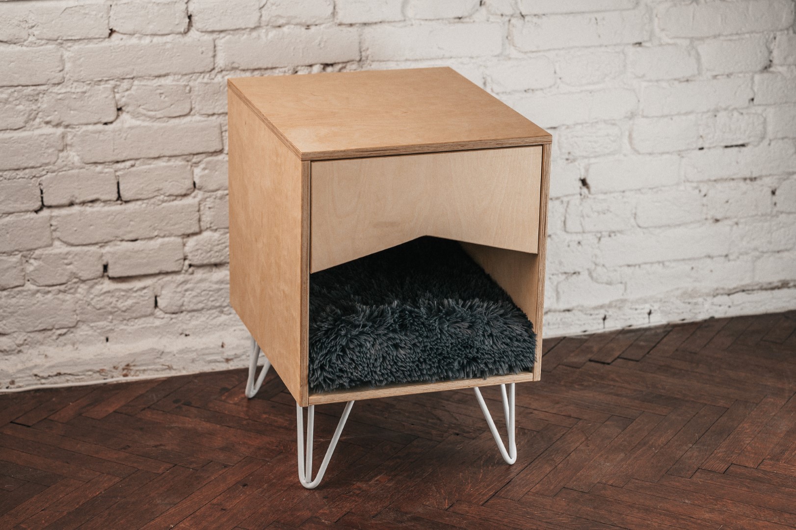 Stylová interiérová boudu pro psa nebo kočku, která dvojí jako elegantní noční stolek. Ručně vyráběná v České republice z kvalitní překližky. Konfigurovatelné kovové/gumové nohy a výběr barev pro lehce pratelný vystýlkový polštář. Unikátní design a optimální rozměry pro pohodlí vašeho mazlíčka. Investujte do exkluzivity a kvality pro váš domov.